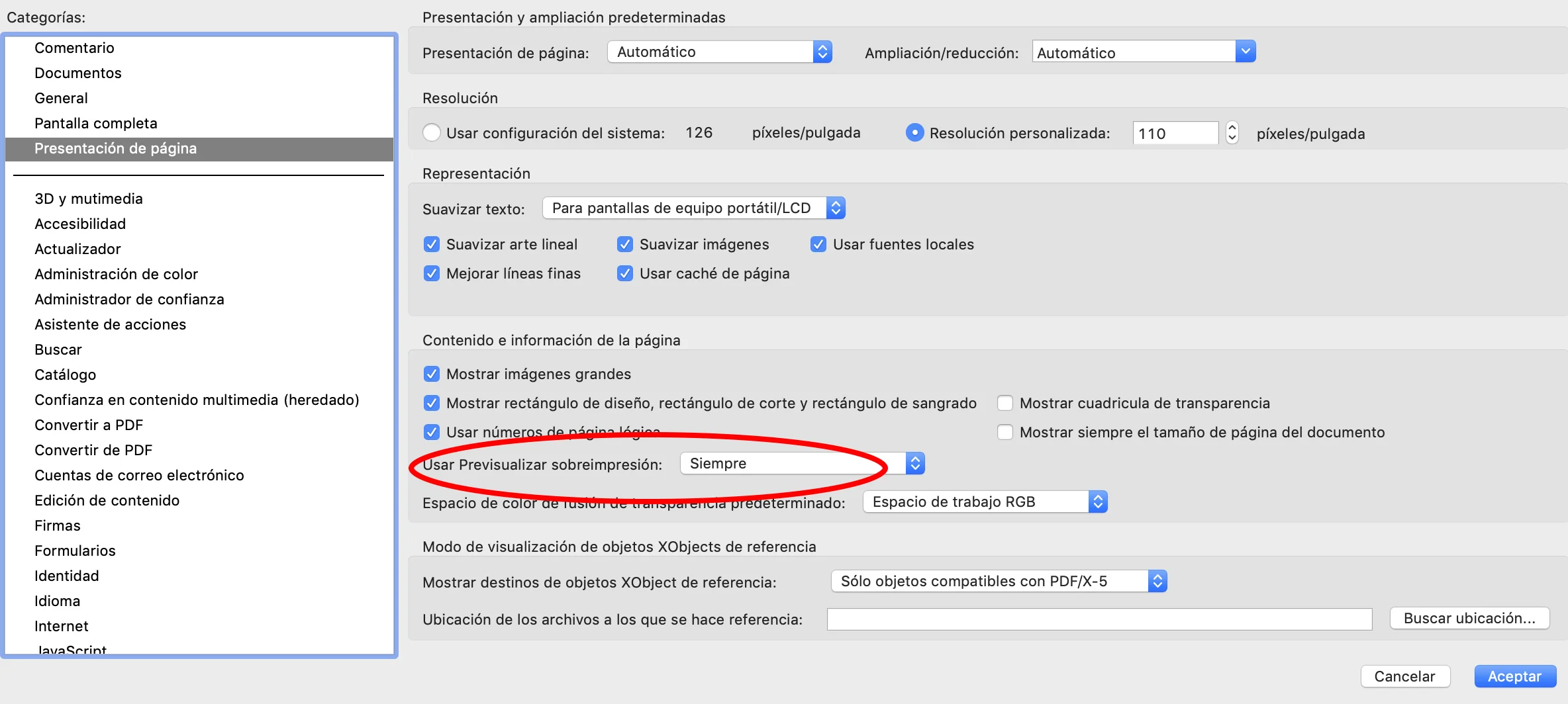 Dans les préférences d'Acrobat, sélectionnez la section « Mise en page » et le menu : Aperçu de la surimpression : cochez TOUJOURS.